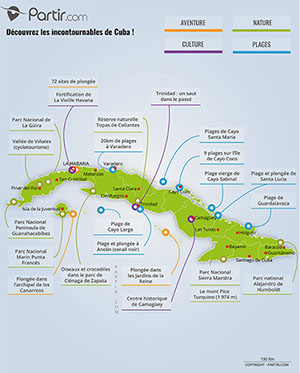 Para mí, las playas de Cuba forman parte de las más hermosas del mundo. Aquí encontrarás paisajes de ensueño cubiertos de arena fina, agua cristalina y una vegetación y una fauna típica del Caribe. Además, el agua está caliente durante todo el año, por lo que el baño y el buceo es siempre un plan ideal. La única pega es el turismo, pues no es fácil encontrar una playa tranquila o simplemente ocupada por la gente de aquí. Algunas playas, como la de Varadero, están exclusivamente habilitadas para el turismo, lo que les hace perder todo su encanto. El lugar es excepcional, pero los grandes complejos le han dado un carácter artificial al entorno. Te aconsejo que hagas como si los turistas no estuvieran. Disfruta de las playas y las actividades que propone su costa, como el buceo o los cruceros. Si no te gusta ese ambiente, aléjate de las playas más conocidas y busca las más recónditas y secretas.Mapa de playas